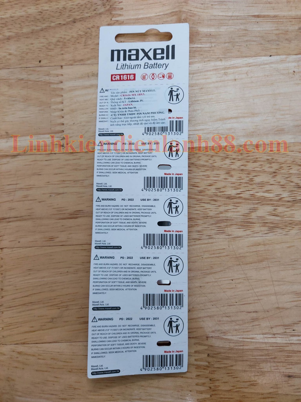 (1 quả) Pin Maxell CR1616 3V Mới, Chính Hãng 100%.