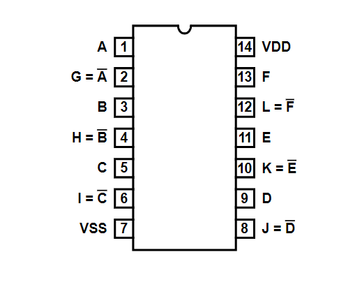 Sơ đồ chức năng khối IC phao dán CD4069UBF