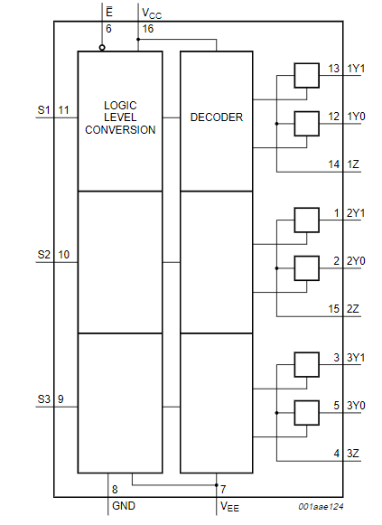 Sơ đồ chức năng khối IC 74HC4053D