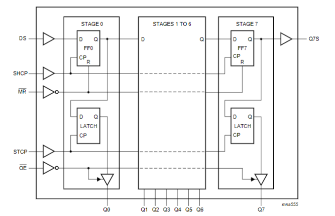 Sơ đồ chức năng khối IC dịch 74HC595D
