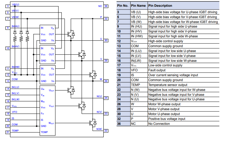 Sơ đồ chân và chức năng khối IC công suất 6MBP30XSF