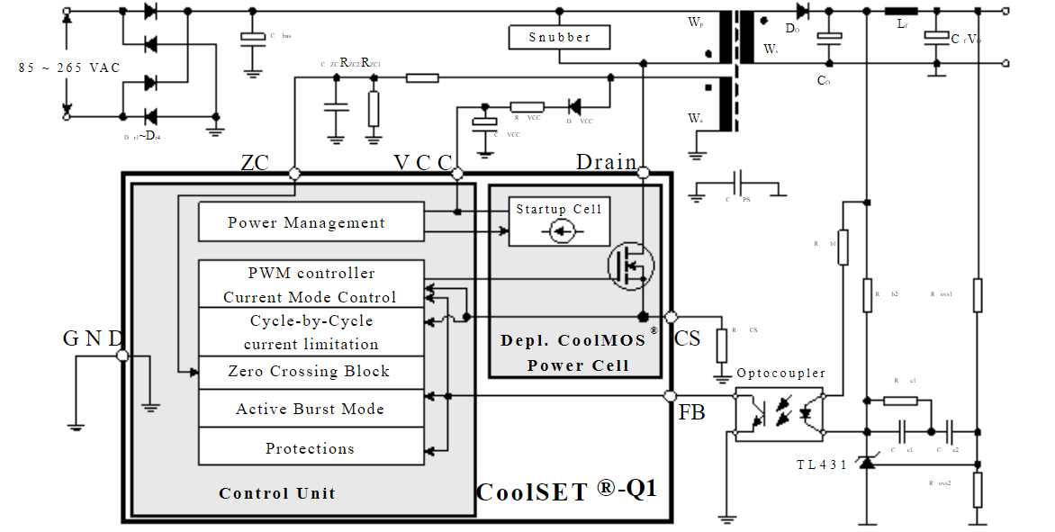 Sơ đồ ứng dụng IC nguồn ICE2QR2280Z