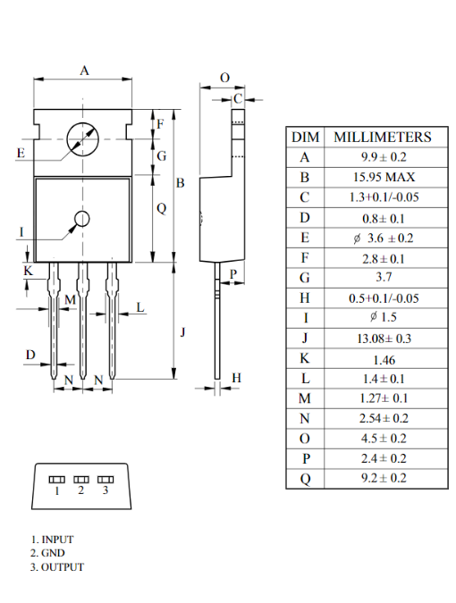 Sơ đồ chân và kích thước IC nguồn KIA7805API