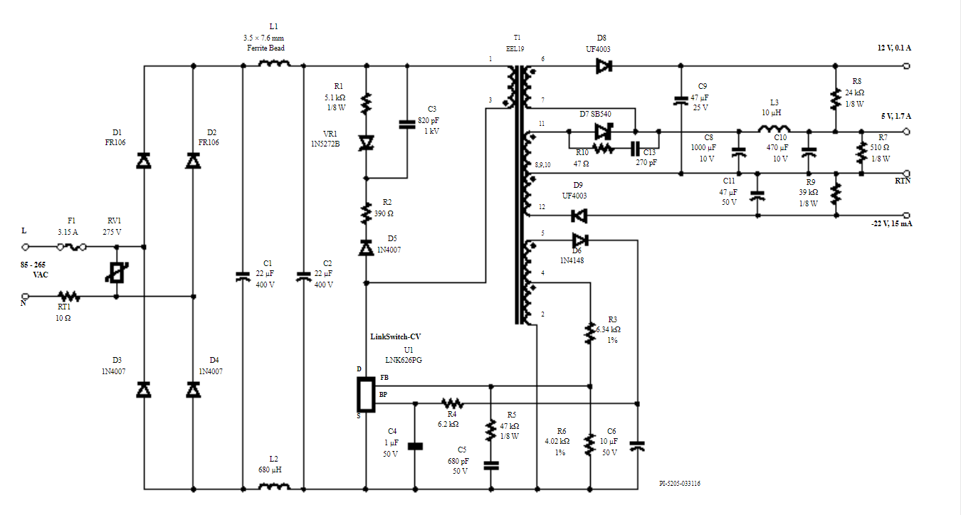Sơ đồ ứng dụng IC nguồn LNK623PG