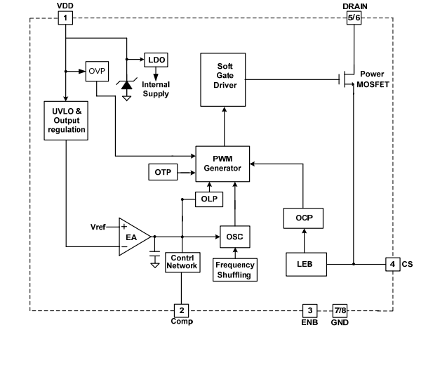 Sơ đồ chức năng khối IC nguồn OB2226SP