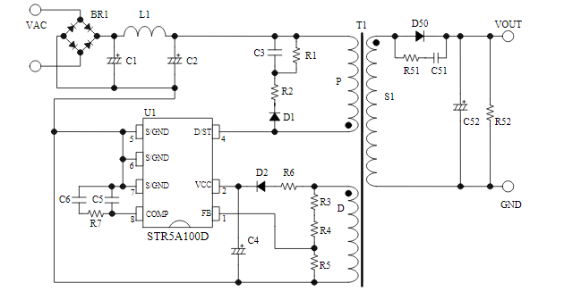 Sơ đồ ứng dụng IC nguồn STR-5A164D