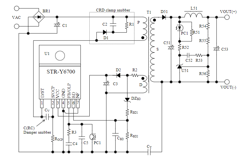 Sơ đồ ứng dụng IC nguồn STR-Y6763
