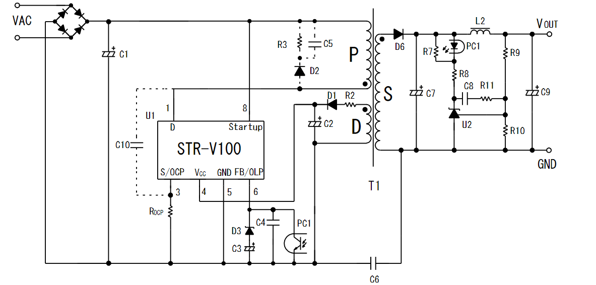Sơ đồ ứng dụng IC nguồn STRV153