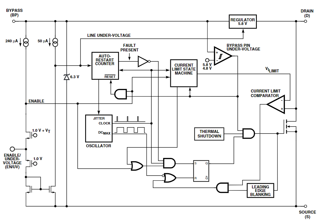 Sơ đồ chức năng khối IC nguồn TNY267PN
