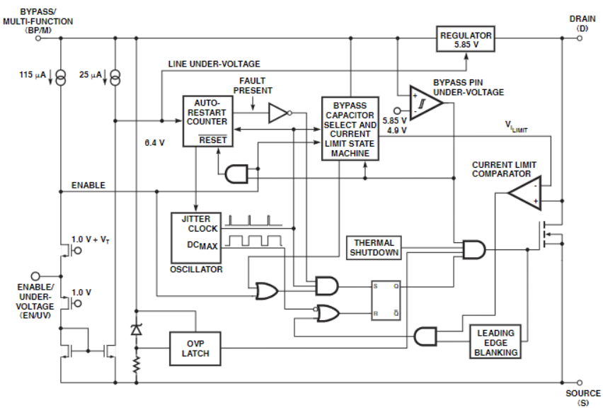 Sơ đồ chức năng khối IC nguồn TNY280PG
