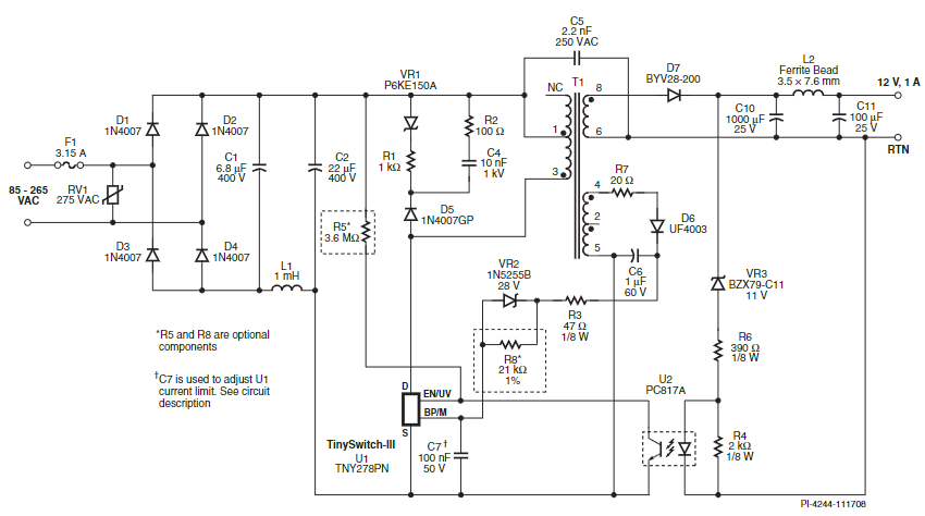 Sơ đồ ứng dụng IC nguồn TNY280PG