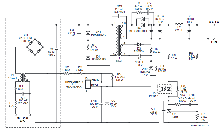 Sơ đồ ứng dụng IC nguồn TNY285PG