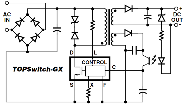 Sơ đồ ứng dụng IC nguồn TOP250YN