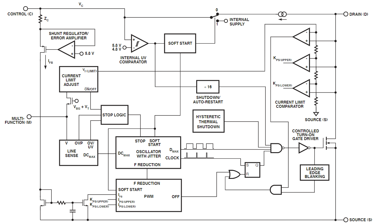 Sơ đồ chức năng khối IC nguồn TOP258MN
