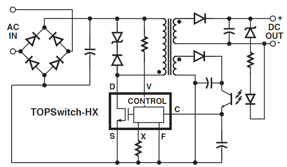 Sơ đồ ứng dụng IC nguồn Top258yn