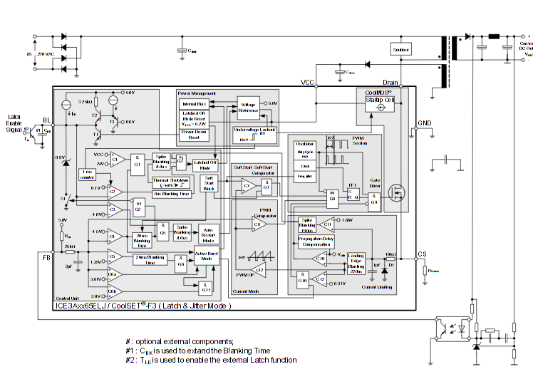 Sơ đồ ứng dụng và chức năng khối ICE3A1065LJ
